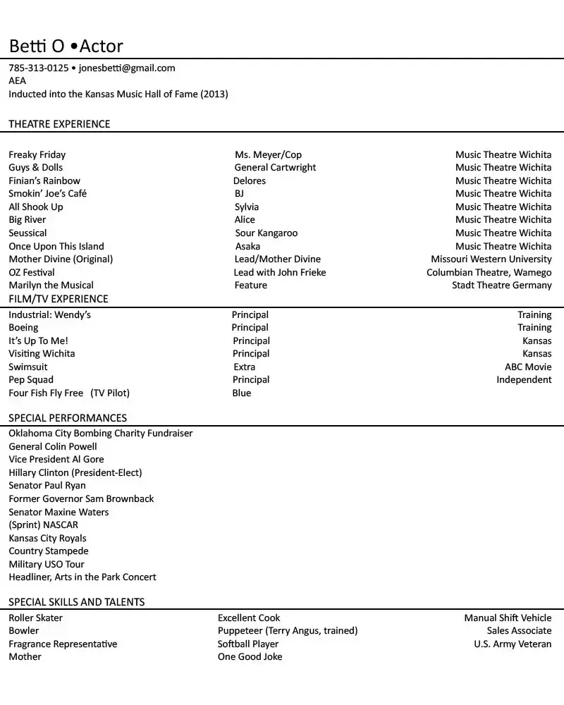 Betti O Actress / Singer / Entertainer My name is Betti O and I’m an actress, singer, and entertainer based in Manhattan, Kansas. ABOUT RESUME REELS PHOTOS CONTACT